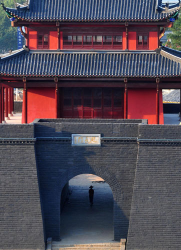 The renovation of Uprising Gate, which is an important site of Xinhai Revolution's Wuchang Uprising, was completed recently to celebrate the 100th of Xinhai Revolution, photo taken on August 16, 2011, in Wuhan, Hubei province. [Photo/Xinhua]