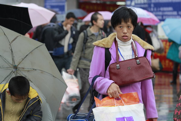 A woman at the Guangzhou Railway Station on Jan 15, 2012. [Photo/CFP]