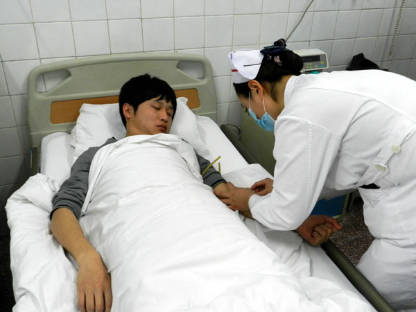 A medical staff collects Zhang's stem cells at PLA Navy General Hospital in Beijing, March 26, 2012. [Photo/Asianewsphoto]