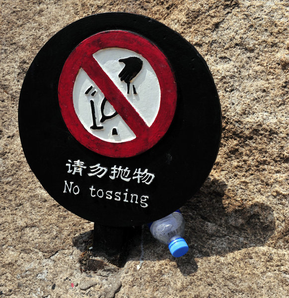 A no tossing sign on Huasha Mountain in Northwest China's Shaanxi province, May 10, 2012. [Photo/CFP]