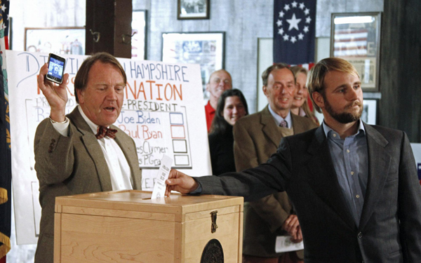 Tanner Tillotson, one of the 10 registered voters in the small village of Dixville Notch, New Hampshire waits for the Town Clerk Rick Irwin to give him permission to cast the first election day ballots of the US presidential election moments after midnight Nov 6, 2012. [Photo/Agencies]