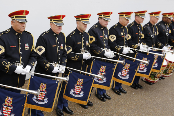 US Army trumpeters take part in a rehearsal for next week's inauguration ceremonies to mark the start of President Barack Obama's second term in Washington, Jan 13, 2013. [Photo/Agencies] |