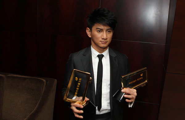 Nicky Wu wins the title of micro blog king at the Sina Micro Blog Night on the evening of Jan 14 in Beijing. [Zhu Xingxin/Asianewsphoto]