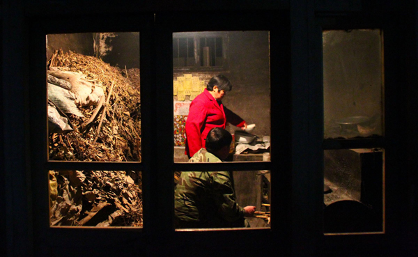 Gao helps his wife cook when he gets home from work, March 6, 2013. Gao's wife has breast cancer, and can barely do any hard work. [Photo/Xinhua]