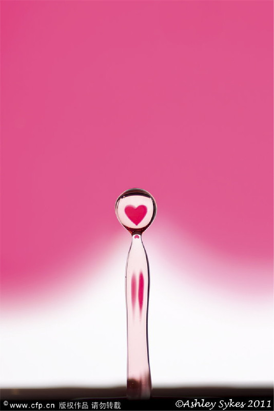 Photographer Ashley Sykes spent hours firing colored droplets at the water from a bottle suspended 12 inches above. [Photo/CFP]