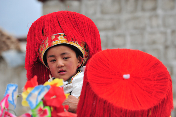 Tibetans celebrate the Wangguo Festival in Doilungdeqen county in Lhasa, capital of the Tibet autonomous region on July 17, 2013. Wangguo is transliterated from Tibetan and literally means "surrounding crops". During the festival, which usually falls before autumn harvest in late July or early August, Tibetans dress up and line up wandering around crops to celebrate the harvest. [Photo/Li Zhou/Asianewsphoto]