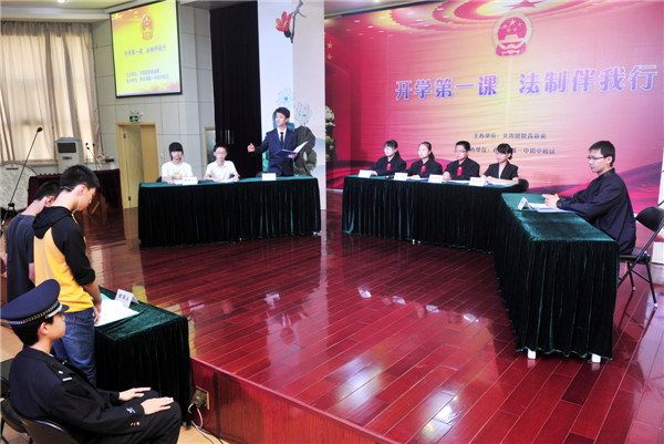 Students learn about the law at a model court in Xi'an, Shaanxi province, Sept 1, 2013. [Photo by Yuan Jingzhi/Asianewsphoto]