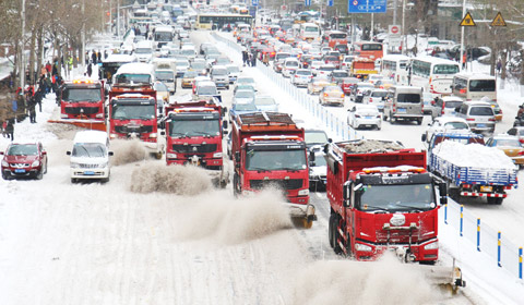 Clean-up begins after blizzard in Harbin