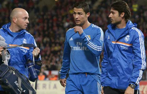 Nikolay Petshak carries the Olympic torch as he leads a group of members of local winter swimming clubs during the Sochi 2014 Winter Olympic torch relay in the waters of the Yenisei River in Russia's Siberian city of Krasnoyarsk, November 26, 2013. 30 members of winter swimming clubs took part in the relay, with the water temperature at about 5 degrees Celsius (41 degrees Fahrenheit) and the air temperature at about minus 8 degrees Celsius (17.6 degrees Fahrenheit). [Photo/icpress.cn]