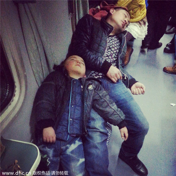 Passengers sleep on the night train from Hangzhou city to Guiyang, Jan 8. [Photo/icpress.cn]