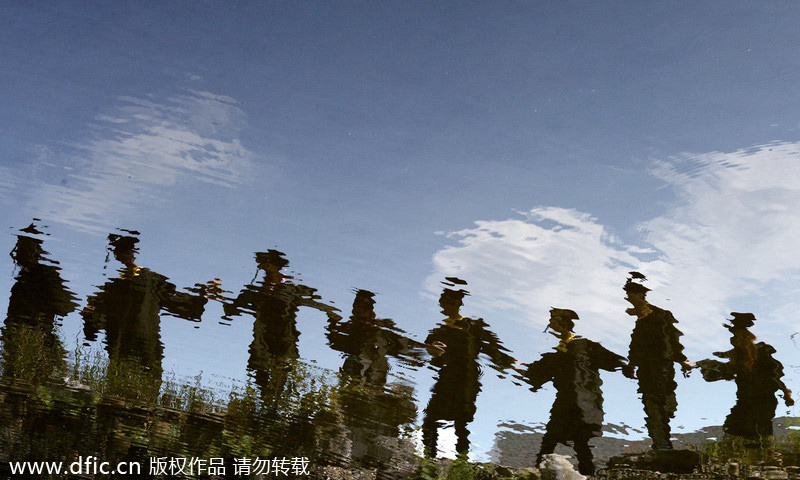 Students pose for a graduation photo in "super-realism" style at China West Normal University in Nanchong, Southwest China's Sichuan province, April 22. Graduation photos are the final act of their education as they leave school to start jobs in the months ahead. [Photo/icpress]