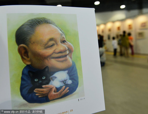A cartoon of former Chinese leader Deng Xiaoping is seen on display at the 10th China International Cartoon and Animation Festival in Hangzhou, April 29, 2014. [Photo/cfp.cn] |
