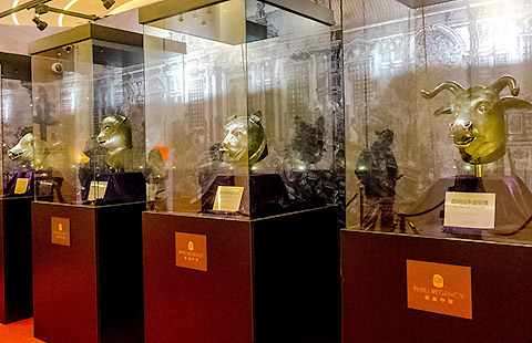 Animal heads of Old Summer Palace relics on display in Shanghai