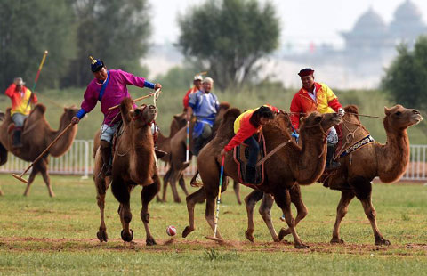 Athletes perform camel ball at ethnic minorities games