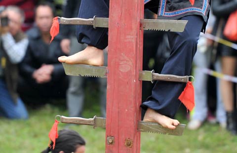 Climbing a ladder of knives to mark Double Third Day festival