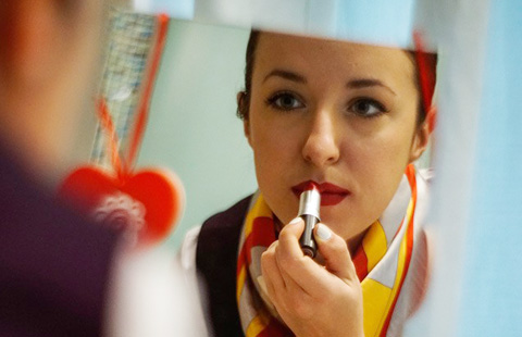 Russian airline stewardess flying over China
