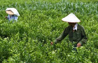 Farmers harvest jasmine flowers in S China's Guangxi
