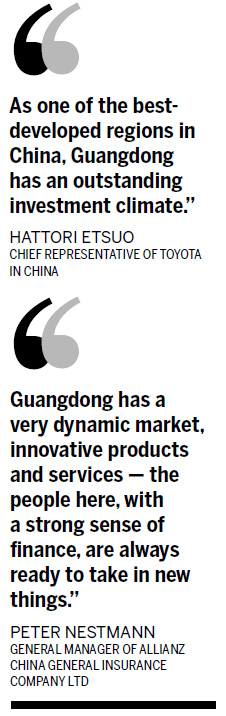 "As one of the best-developed regions in China, Guangdong has an outstanding investment climate," Hattori Etsuo, chief representative of Toyota in China, was quoted by local media as saying.