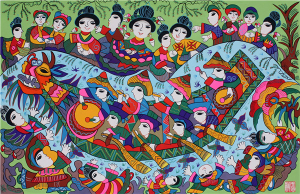 Dragon Boat Fair at Spring Festival by Wang Mingtao. [Photo/zjol.com.cn]
