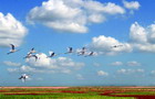 Every autumn, thousands of migratory birds make their way to the nature reserves on the Yellow River Delta to winter over.