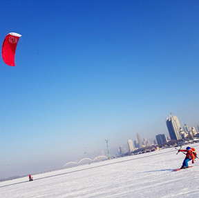 Snowkiter shows stunning skills in Harbin