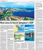 The coastal city Qingdao in Shandong province aims to develop a new economic zone on its west coast, pledging to build it into an economic engine that could rival the city as a whole in terms of economic output in the next five years.