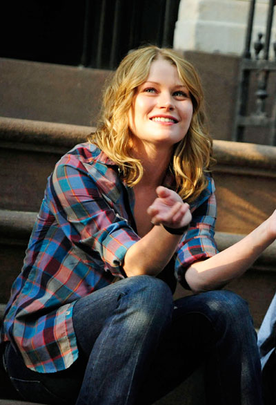 Emilie de Ravin films a scene for their upcoming movie "Remember Me" right at dusk in Brooklyn, July 14, 2009. [CFP]