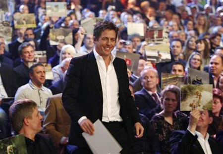 Hugh Grant stands in the audience during the German game show "Wetten Dass" (Bet it...?) in Bremen, December 5, 2009.[Agencies]