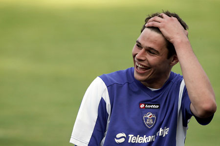 Nikola Zigic of Serbia and Montenegro's national soccer team smiles