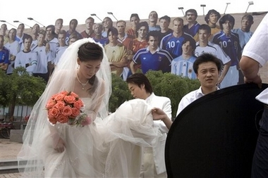 Newlywed poses with soccer stars (newsphoto/AP) Updated: 2006-06-12 16:24