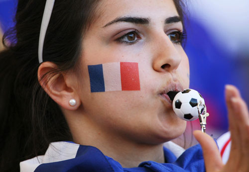 A fan of France waits for the start of the Group G World Cup 2006 soccer match between France and Switzerland in Stuttgart June 13, 2006.[Reuters]
