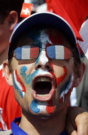 French soccer fans (Reuters) Updated: 2006-06-14 14:36  A French soccer fan sings in downtown Stuttgart June 13, 2006.