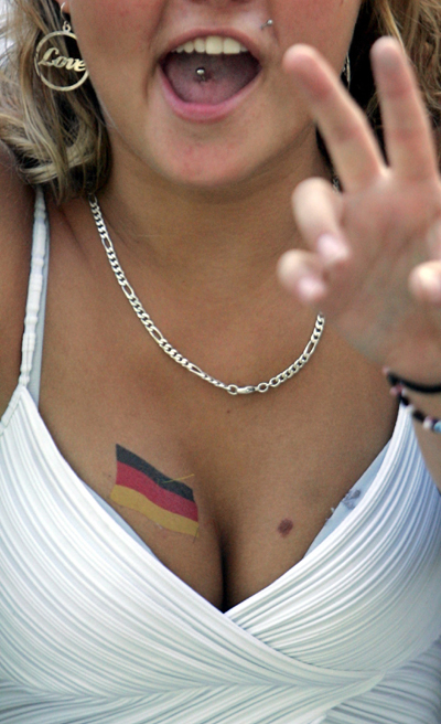 soccer fan watches the Group A World Cup 2006 soccer match between Germany and Poland at the FIFA 2006 World Cup during a television screening at a public viewing area in Berlin June 14, 2006. [Reuters]