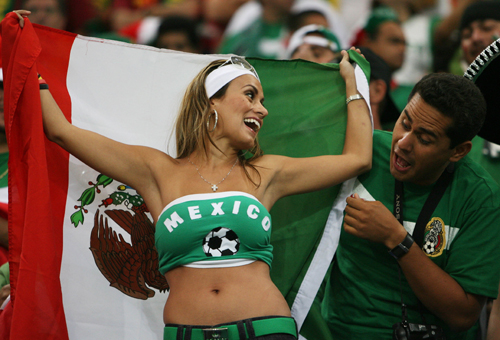 Fans interact before the start of the Group D World Cup 2006 soccer match between Portugal and Mexico in Gelsenkirchen June 21, 2006. [Reuters]