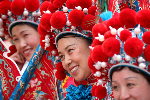 Performers dance near the Chinese Wall at Badaling June 23, 2006 during a ceremony to start the fourth Beijing Olympic arts festival. [Reuters]