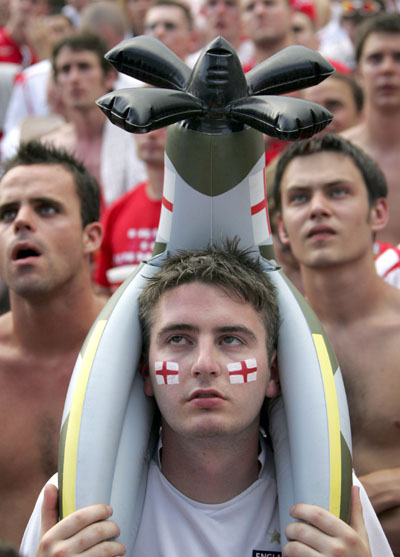 England soccer fans watch the World Cup 2006 soccer match between England and Ecuador at a 'fan-fest' in Stuttgart city centre, June 25, 2006. [Reuters]