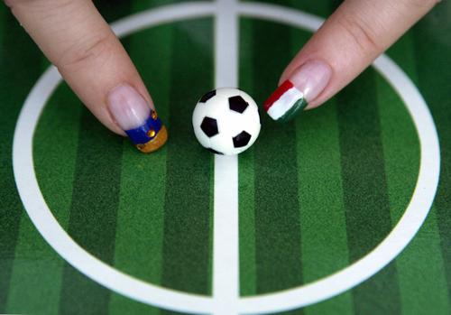 World Cup quarter finalists of Ukraine and Italy are presented at a nail salon