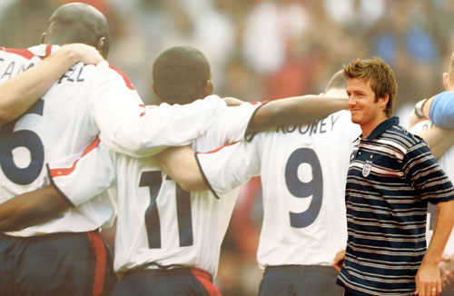England captain David Beckham leaves a news conference at their World Cup soccer training camp near Baden-Baden, June 29, 2006. [Reuters]