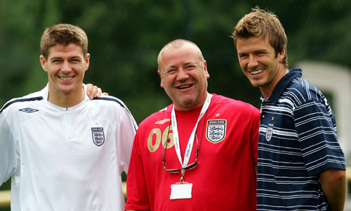 Beckham feels fit in training camp (Reuters) Updated: 2006-06-30 10:46  England captain David Beckham (R) and Steven Gerrard (L) meet