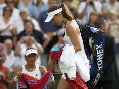 Switzerland's Martina Hingis walks off the court after being defeated by