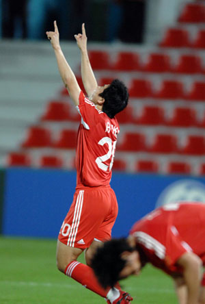 Zhou Haibin, who scored the winner in China's first group match against Iraq, broke the deadlock on 40 minutes with a timely follow-up into the open net after playermaker Zheng Zhi's free kick slipped off goalkeeper Syed Adney's hands. Forward Gao Lin headed home front-line partner Zhu Ting's smart flicker at the far post in the 51st minute. China could widen the margin, but Shen Longyuan squandered two great chances facing an empty net. The Malaysians pulled one back with a stunning 35-meter-free kick from midfielder Mohamad Hardi on 65 minutes. Feng Xiaoting killed the suspense of the game five minutes later when the center back drove home right winger Chen Tao's smart back heel pass inside the box, after Syed Adney tipped over Zheng Zhi's well-curved goal-bound shot in the 64th minute. China now have six points from two straight wins under their belt and are in good situation to qualify for next round, while Malaysia had to bid farewell to the tournament after two losses. |