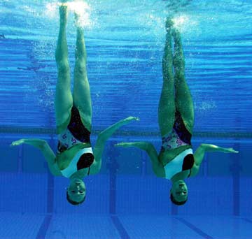 Synchronized Swimmers Anastasia Gloushkov and Viktoria Yarmolinskaya of