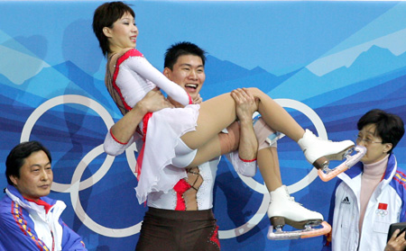 Zhang Dan and Zhang Hao, best remembered for coming back from Dan's horrific fall in the free skate at the Turin Winter Olympics last February, have been named to represent China at the 23rd World University Winter Games, which is slated for January17-27 in Turin, Italy, while the 6th Asian Winter Games will take palce from January 28-February 4 in Changchun, the capital city of northeast China's Jilin Province. Wang Yumin, an official at the country's winter sports administration center, said the two Zhangs will be China's major medal prospects at the World Winter Universiade. "But I don't think their absence will dampen our chances of winning the pairs event at the Asian Winter Games," said Wang. "After all, we have two other top pairs - Shen Xue/Zhao Hongbo and Pang Qing/Tong Jian." Shen Xue and Zhao Hongbo won the world title in 2002 and 2003 and took silver in 2004 before missing the world championships for the next two years after Zhao suffered an Achilles' tendon injury while practicing a triple toeloop. After barely missing the medals podium in the Turin Games, Pang Qing and Tong Jian, ranked third in a nation where pairs are king, defeated Zhang Dan and Zhang Hao to win their first world crown in Calgary. |