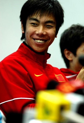 China's Hu Ze smiles at the press conference after he won the men's 500m short track speed skating at the 6th Winter Asian Games January 30, 2007. [Xinhua]
