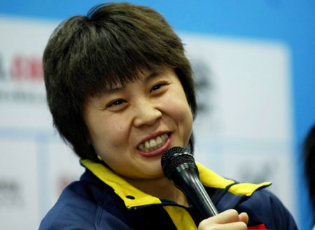 Smiling faces after Asiad victory(Xinhua)Updated: 2007-01-31 09:26 China's Wang Meng smiles at the press conference after she won the women's 500m short track speed skating at the 6th Winter Asian Games January 30, 2007. [Xinhua]