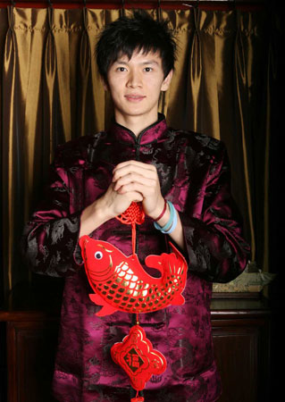Shuttler Bao Chunlai poses for a group of photos for Power Sports, a