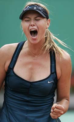 Russia belle advances at Roland Garros(Reuters)Updated: 2007-06-05 21:59 Russia's Maria Sharapova celebrates after defeating compatriot Anna Chakvetadze at the French Open tennis tournament at Roland Garros in Paris June 5, 2007. [Reuters]