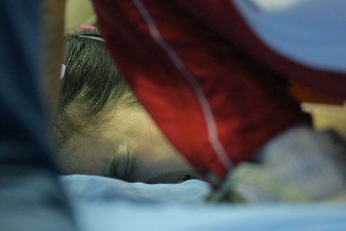 Wang Yan, a 15-year-old Chinese gymnast reacts after she broke her neck
