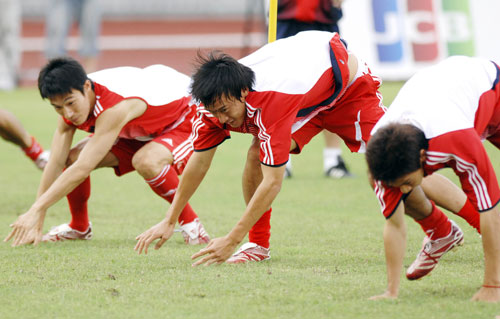 Chinese footballers at training before last group game(Xinhua)Updated: 2007-07-17 09:20 Chinese footballers train before their last game of the first round against Uzbekistan of the ongoing Asian Cup football tournament in Kuala Lumpur of Malaysia July 16, 2007. The game will kick off on Wednesday. [Xinhua]
