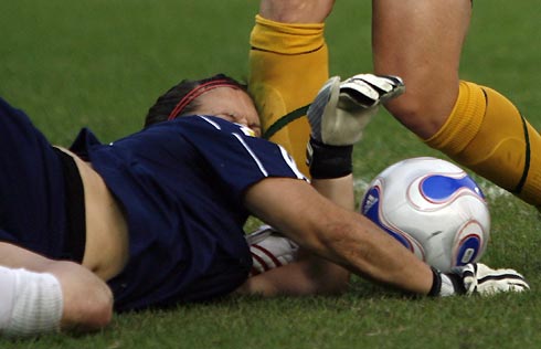 Canada's goalkeeper Erin Mc Leod dives to catch the ball during their Group C soccer match against Australia at the 2007 FIFA Women's World Cup in Chengdu September 20, 2007. Australia drawed with Canada 2-2 to advance with group leader Norway. [Reuters]
